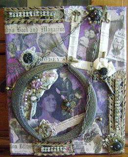 This is what I have been working on ... slowly ...... I used loose pages from a 1870's Godey's Ladies Book as my inspiration . It was able to use images cut out and gel transfers directly from the pages ... no copies . The antique purse frame worked out well , I thought it was a fun way to use it .